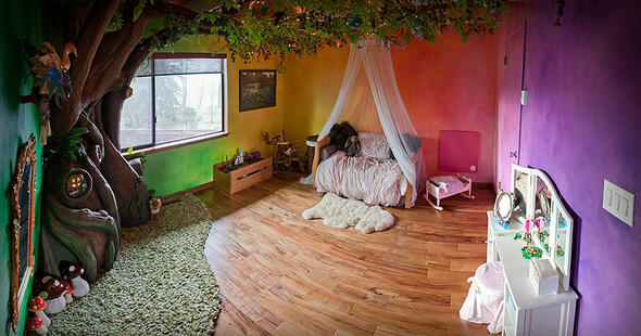 Баща преобрази спалнята на дъщеря си в приказна гора » към статия