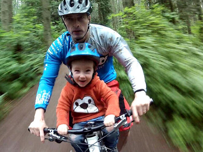 Друг е въпросът как се кара с цяло дете между краката, но се предполага, че това се компенсира от удоволствието от споделеното изживяване.