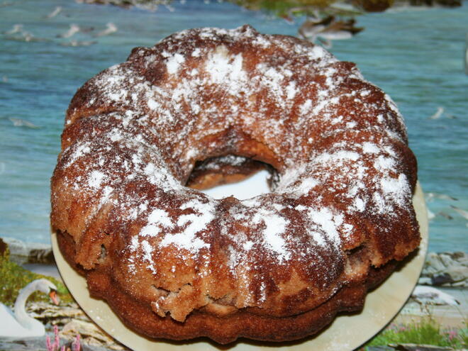 След като е готов, поръсете го с пудра захар и го оставете да се охлади. Мммм! Адски е вкусен, ще се убедите сами. Той върви чудесно с чаша ободряващ чай, няколко романтични целувки и нежна музика. Приятно!