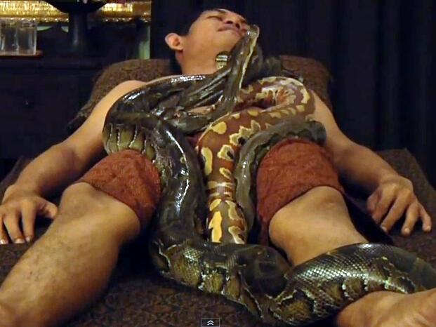 Ако идеята за педикюр от рибки ви се е сторила леко потресаваща, значи представата за масаж от питон ще ви довърши окончателно.