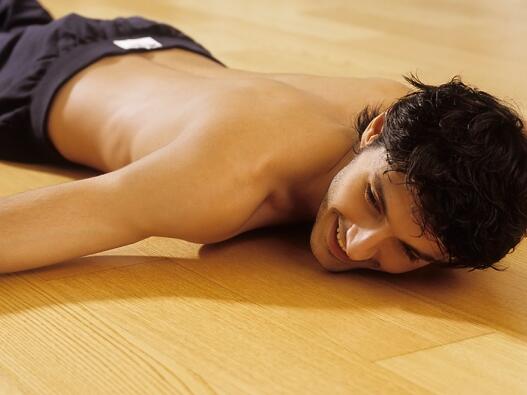 Освен на паркет, движението може да се прави и на друга гладка повърхност. За да не ви е студено, сложете под гърба някаква постелка.