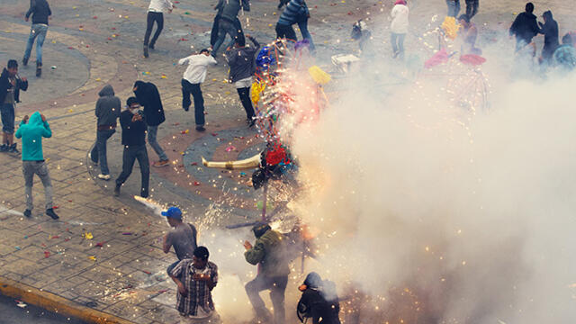 Това не е драматичен кадър от някой протест, а снимка от Националния фестивал на пиротехниката, който се провежда в Тултепек,...