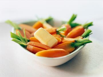 Отсъствието на мазнини в храната допълнително затруднява конвертирането. Похвално е, че сварихте морковите, но сетихте ли се да добавите масло? Тъжно е, но ако в ястието ви липсват мазнини, в храносмилателния ви тракт ще постъпят твърде малко жлъчни соли и мастноразграждащи ензими, които да осъществят трансформацията.
