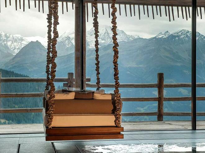 В този ред на мисли, въображаемото ни пътуване до Вербие – един от най-впечатляващите курорти в швейцарските Алпи, е някак съвсем логично. Тук се намира мини комплексът Trois Couronnes (Три корони), който на мига ни завладя с умопомрачителен изглед към околността и впечатляващ интериор.